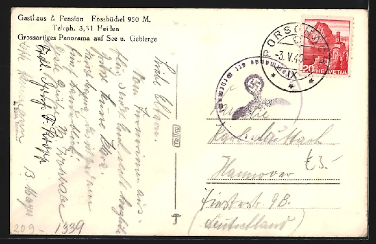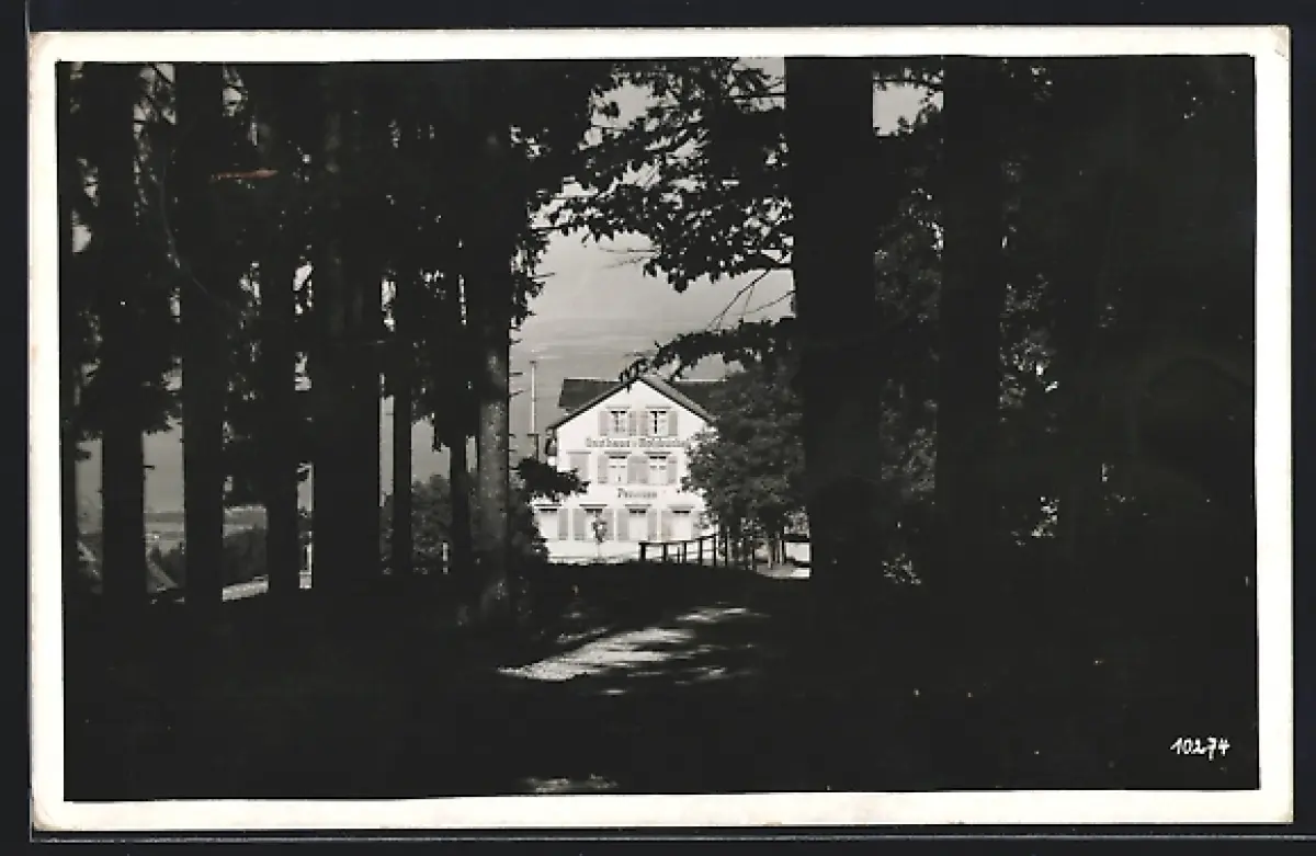 AK Heiden, Durchblick auf Gasthaus und Pension Rossbüchel