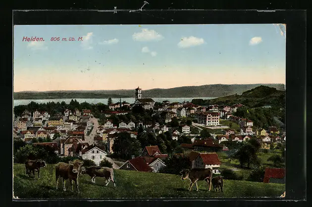 AK Heiden, Teilansicht hinter weidenden Kühen