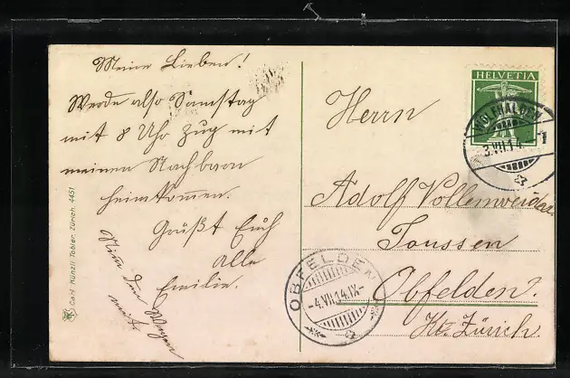 gelaufen 1914, Eckknick oben re., guter Zustand