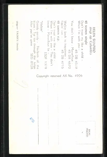 AK Helen Shapiro lächelt, Portrait