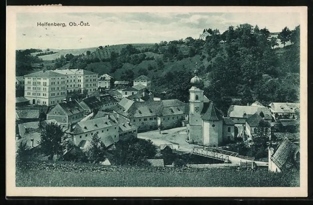 AK Helfenberg /Ob.-Öst., Die Kirche vom Berg aus