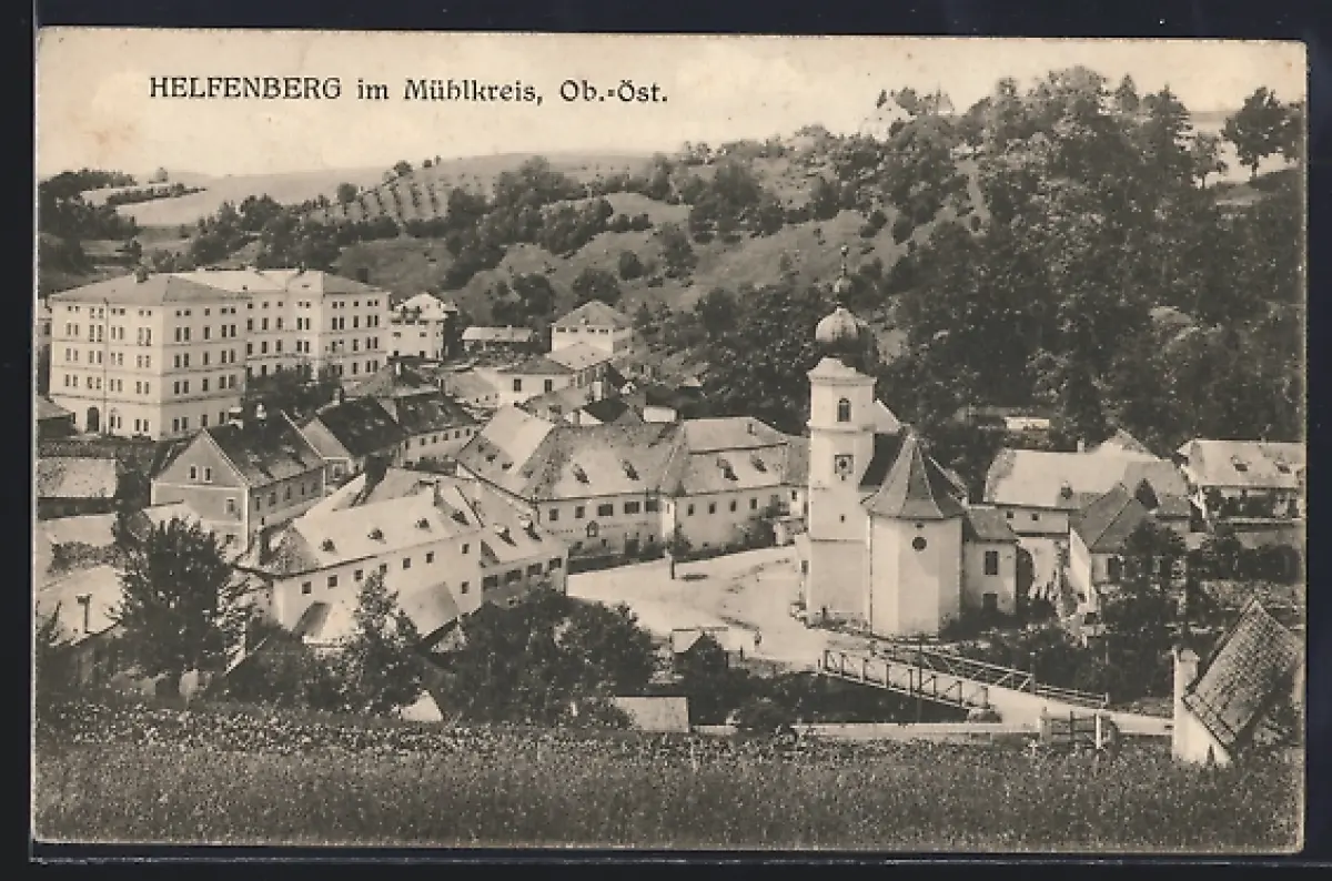 AK Helfenberg, Teilansicht mit Kirche vom Berg gesehen