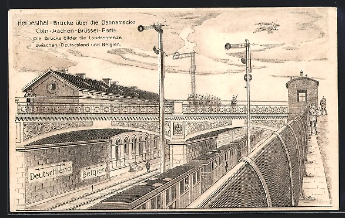 AK Herbesthal, Brücke über die Bahnstrecke, Landesgrenze