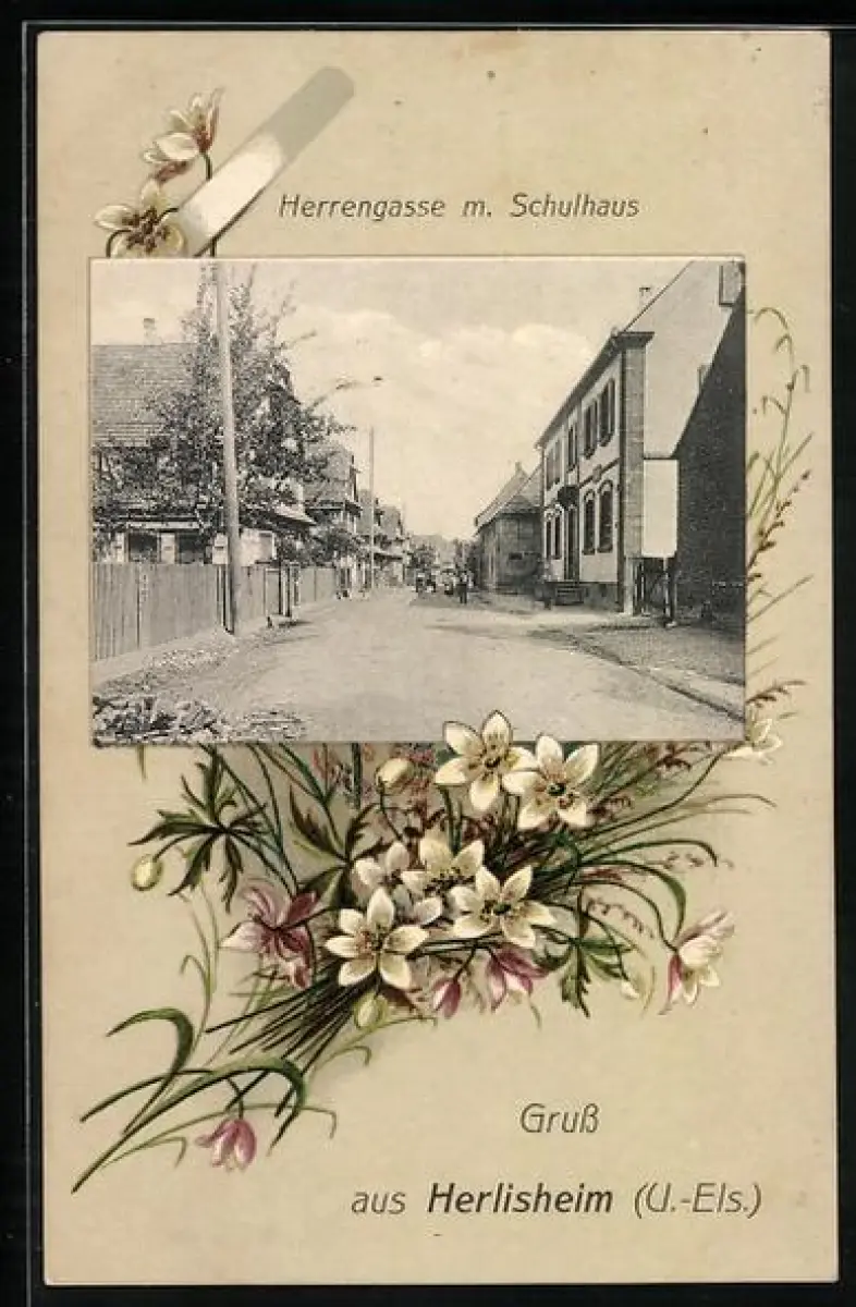AK Herlisheim /U.-Els., Herrengasse mit Schulhaus