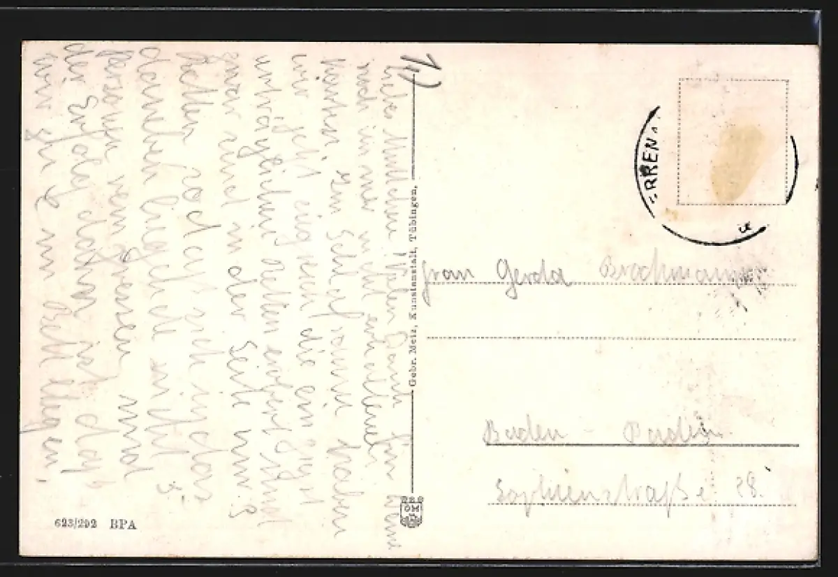 alte Ansichtskarte, gelaufen, Briefmarke entfernt, guter Zustand