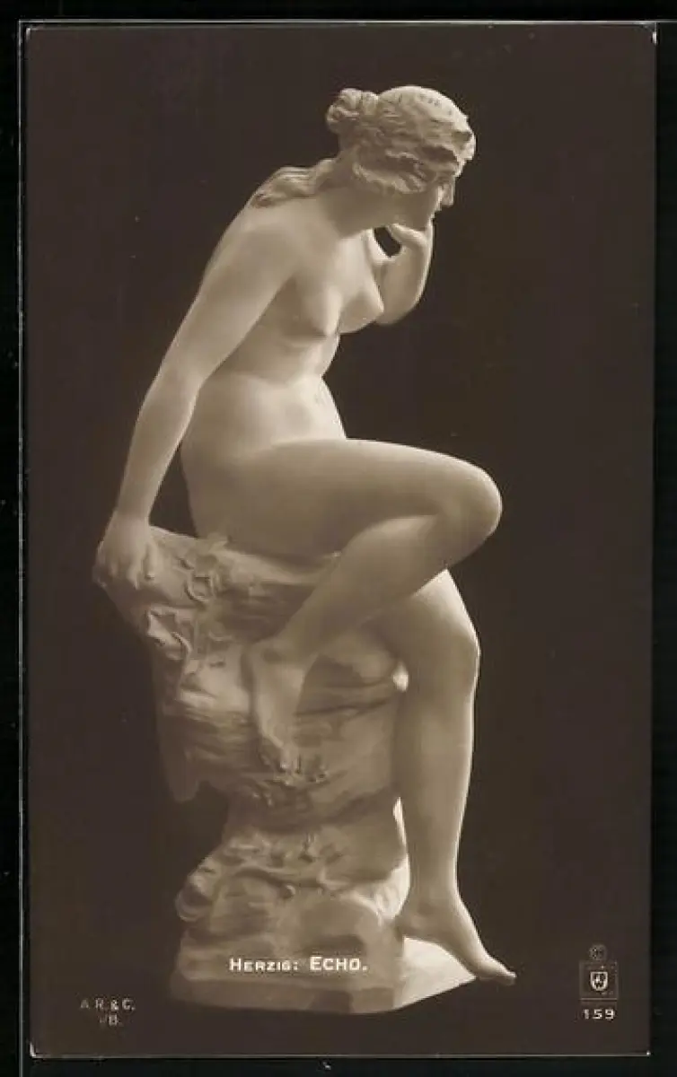 AK Herzig, Echo, sitzende Frau, Plastik