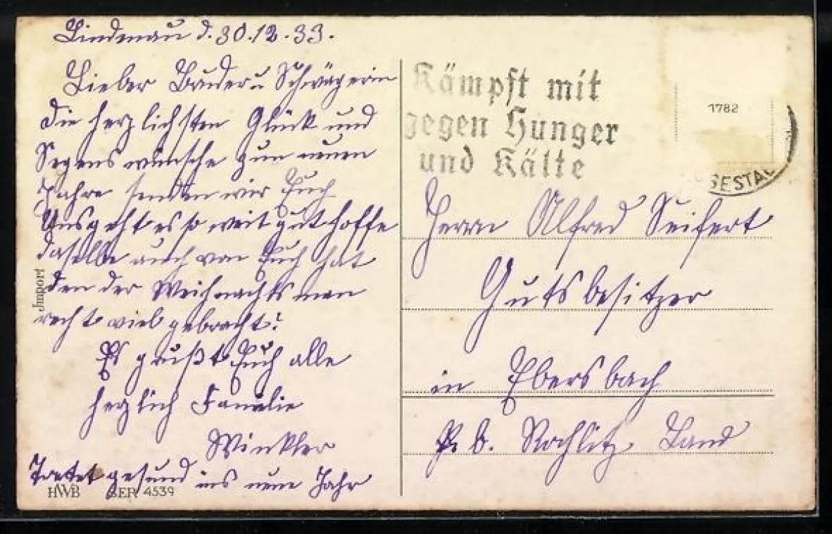 alte Ansichtskarte, gelaufen, Briefmarke entfernt, rückseitig Oberflächenschaden, guter Zustand