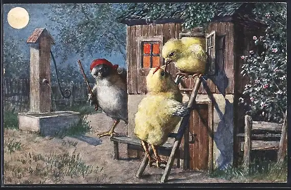 AK Herzliche Ostergrüsse, Verliebte Osterküken
