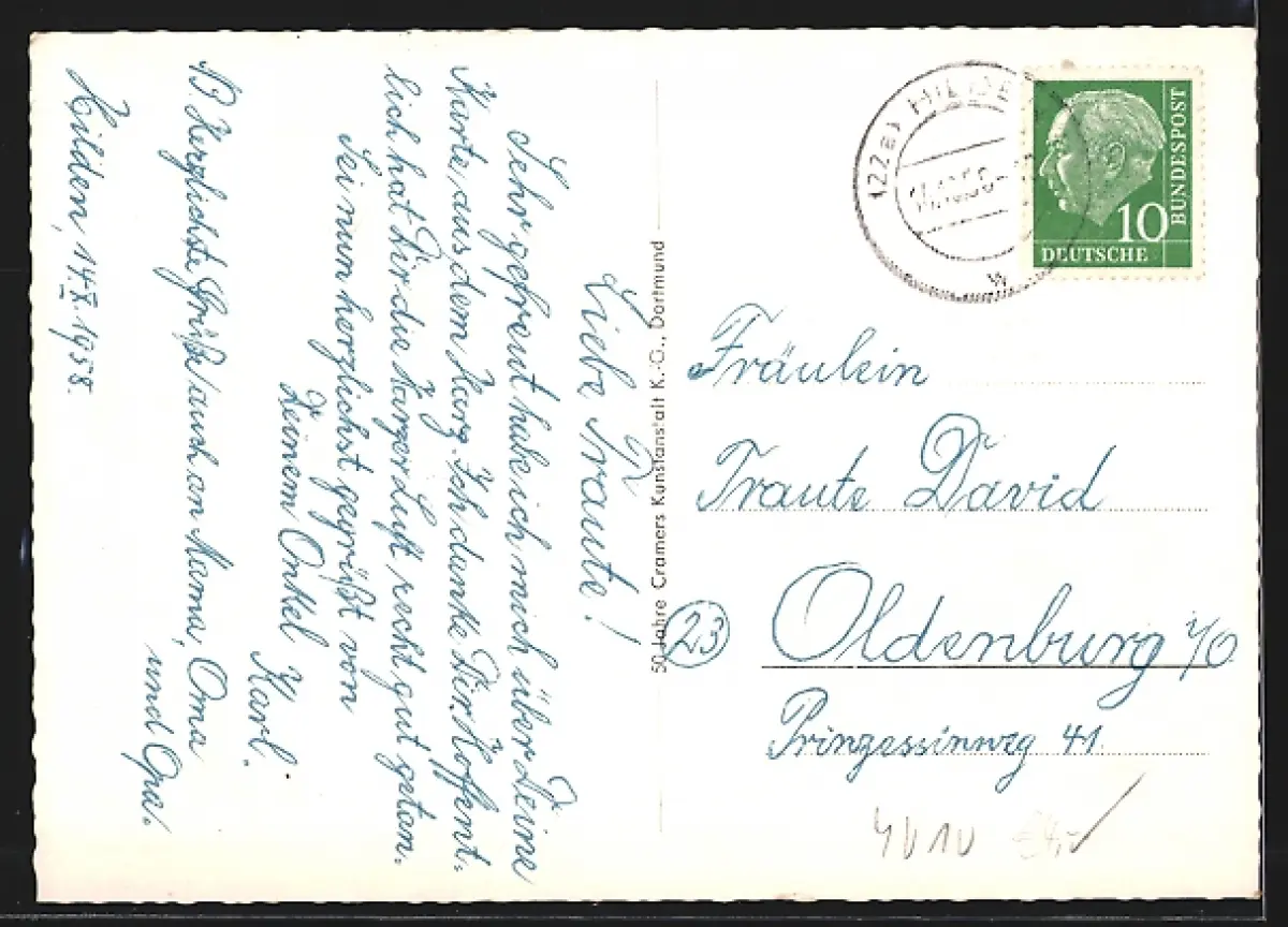 alte Ansichtskarte, gelaufen 1958, guter Zustand