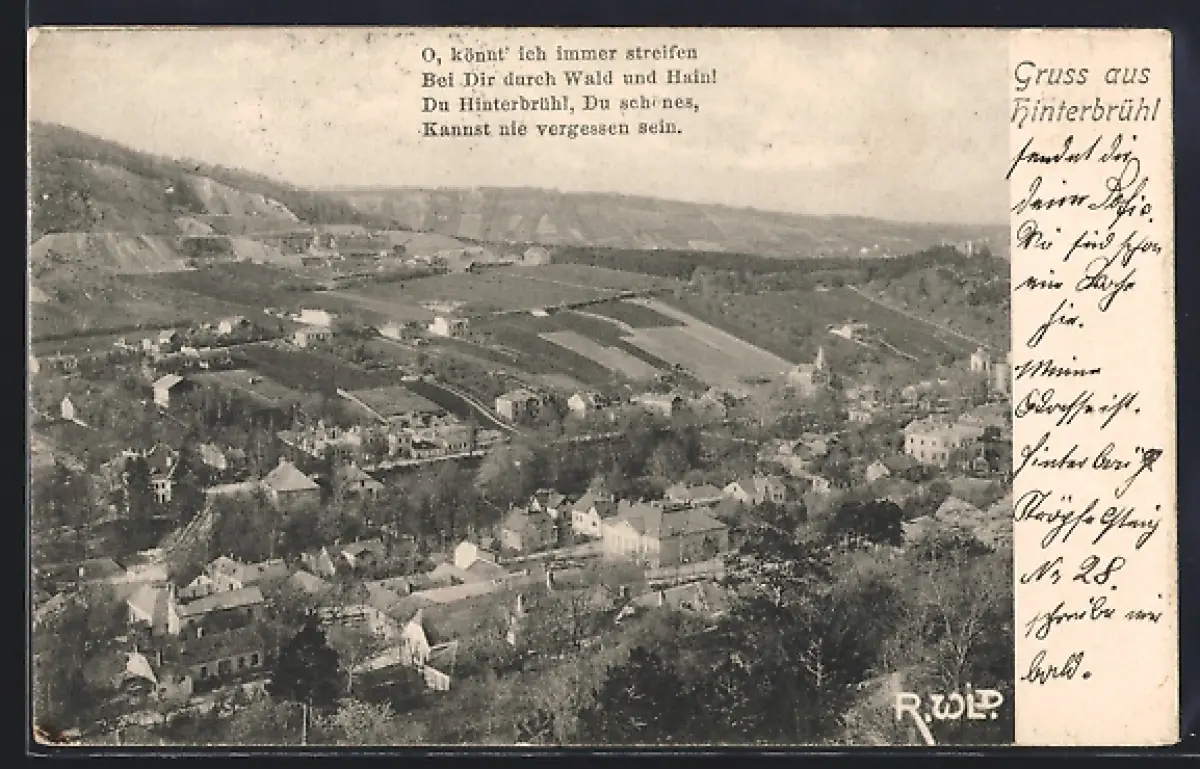 AK Hinterbrühl, Ortsansicht mit umliegenden Feldern