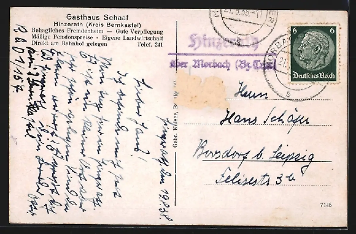 AK Hinzerath /Bernkastel, Gasthaus Schaaf, Stumpfer Turm, Ruine Baldenau, Hochwild