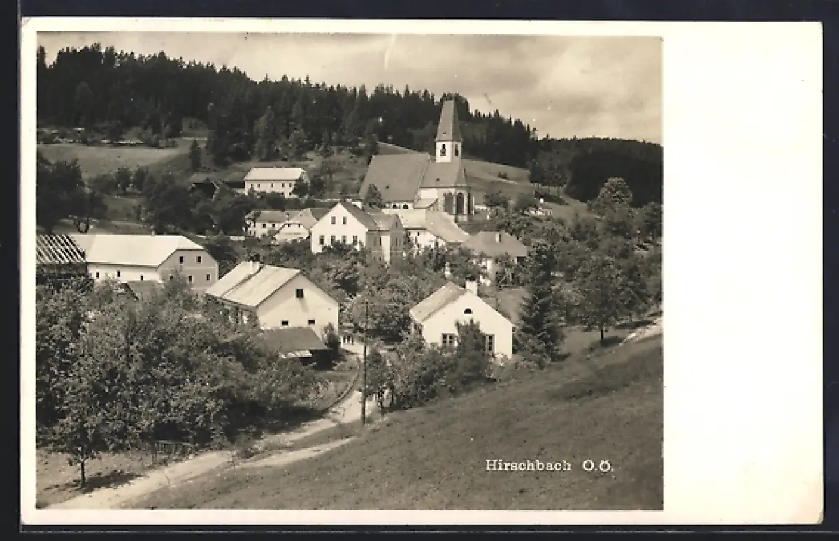 AK Hirschbach /O. Ö., Die Kirche im Ortskern