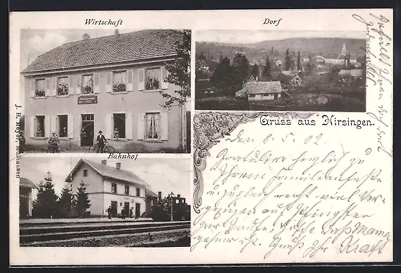 AK Hirsingen, Gasthaus, Bahnhof und Totalansicht