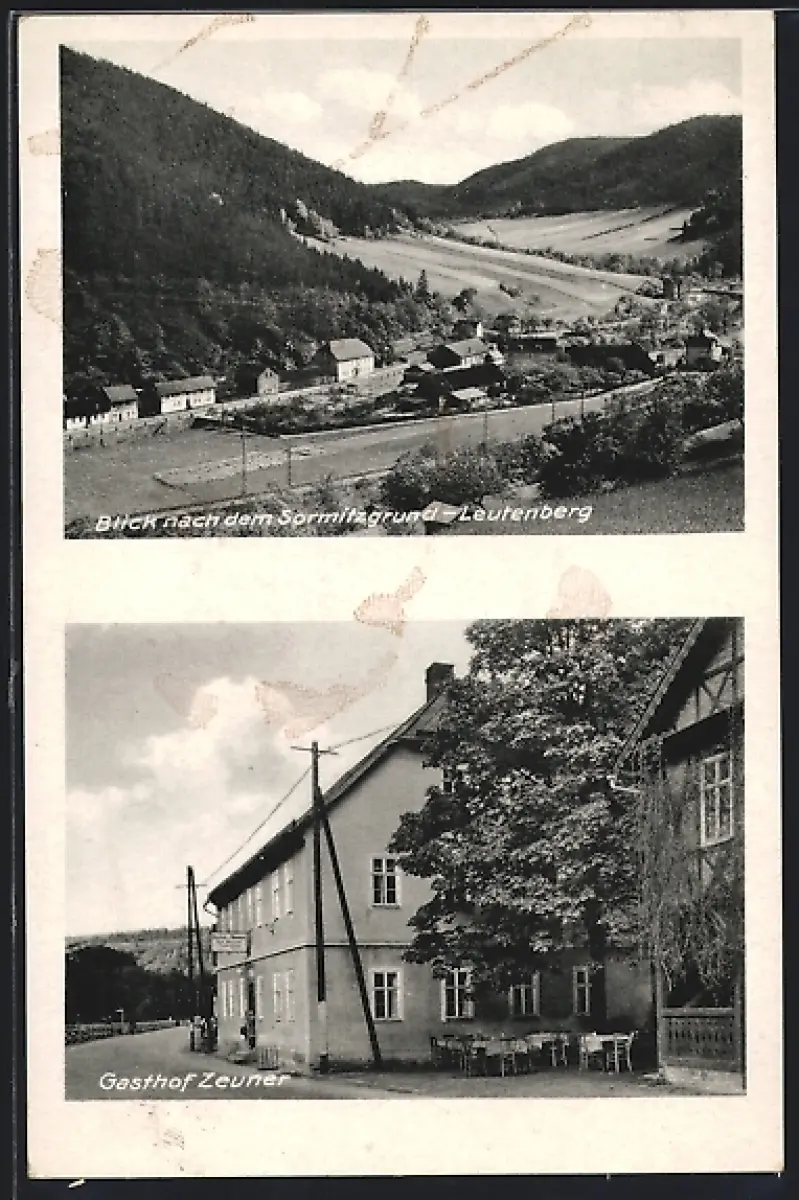 AK Hockeroda /Th., Gasthof-Pension Zeuner mit Strasse, Ortsansicht Sormitzgrund-Leutenberg