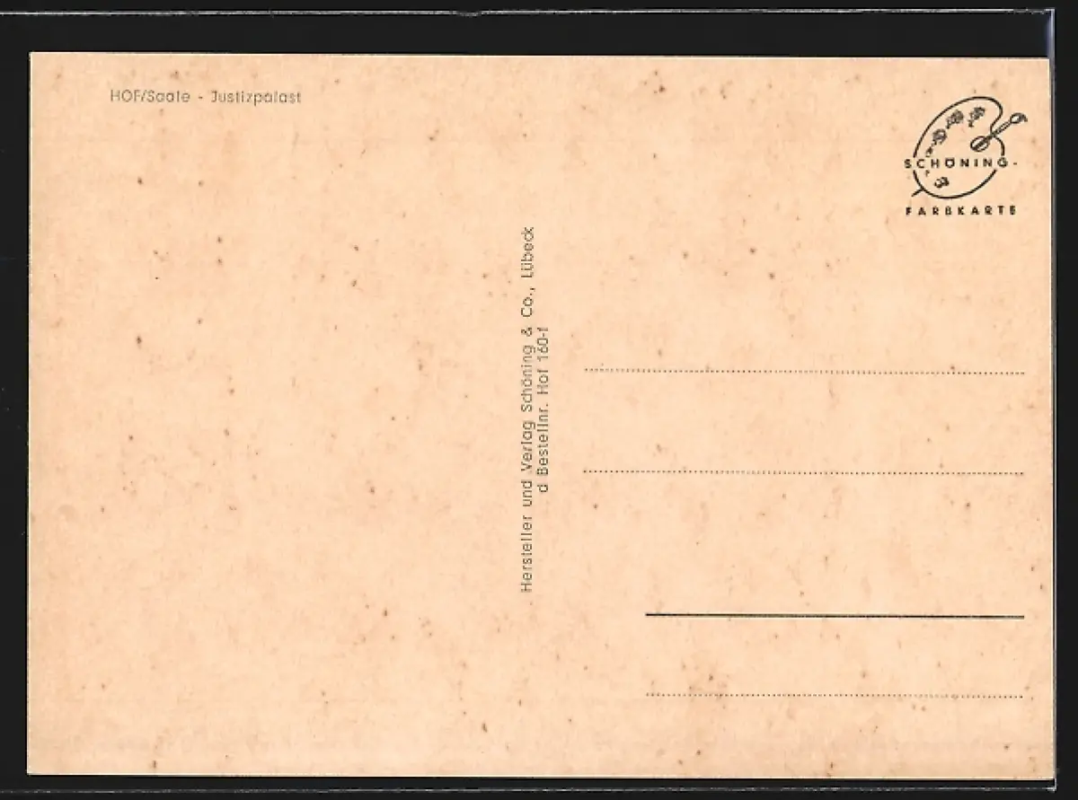 Personenbezogene Daten auf der Rückseite der Karte wurden durch blauen Textmarker unkenntlich gemacht. Die blauen Stellen sind auf die Vorderseite durchgeweicht und wirken sich negativ auf das Postkartenfoto aus