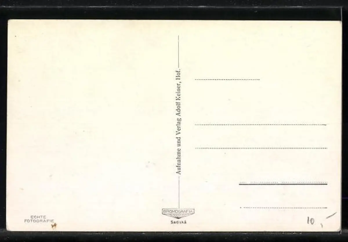 Personenbezogene Daten auf der Rückseite der Karte wurden durch blauen Textmarker unkenntlich gemacht. Die blauen Stellen sind auf die Vorderseite durchgeweicht und wirken sich negativ auf das Postkartenfoto aus