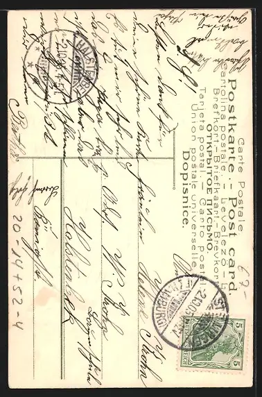 alte Ansichtskarte, gelaufen 1905, Bugspur li. oben, guter Zustand