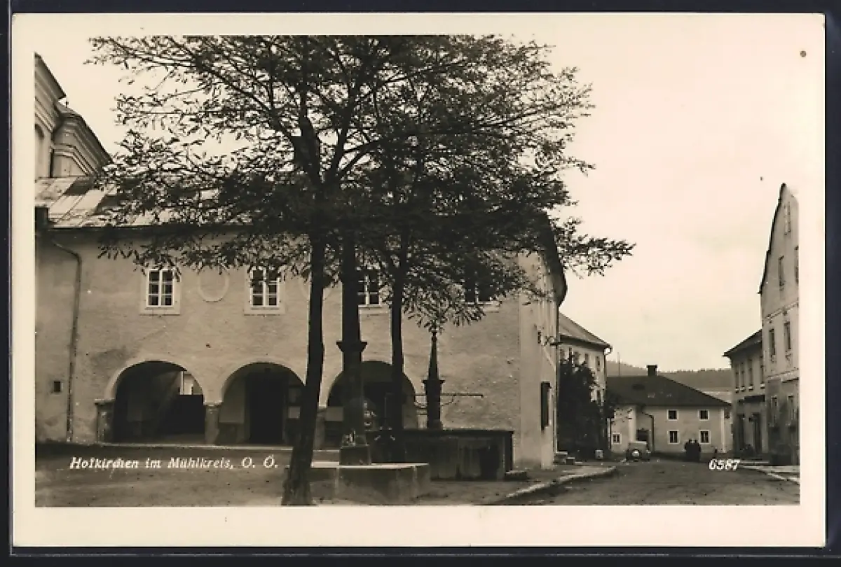 AK Hofkirchen im Mühlkreis, Strassenpartie an einem Brunnen
