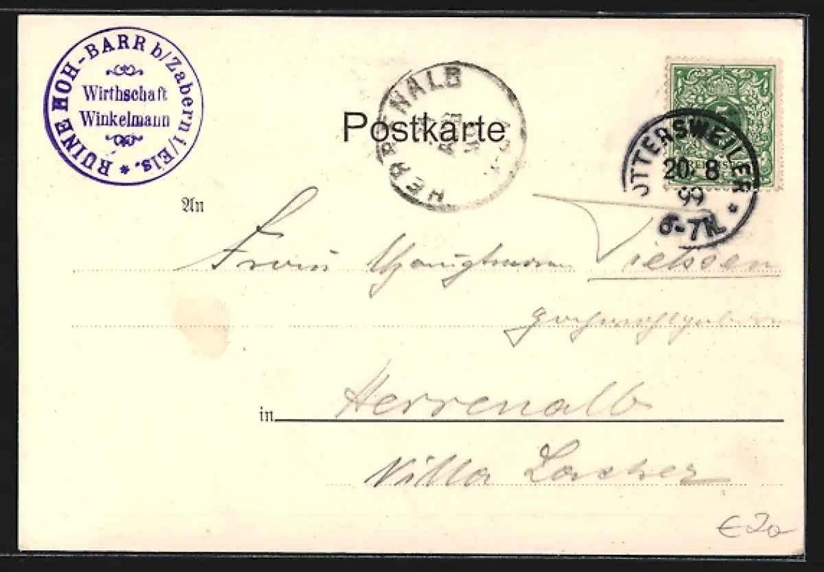 alte Ansichtskarte, gelaufen 1899, guter Zustand