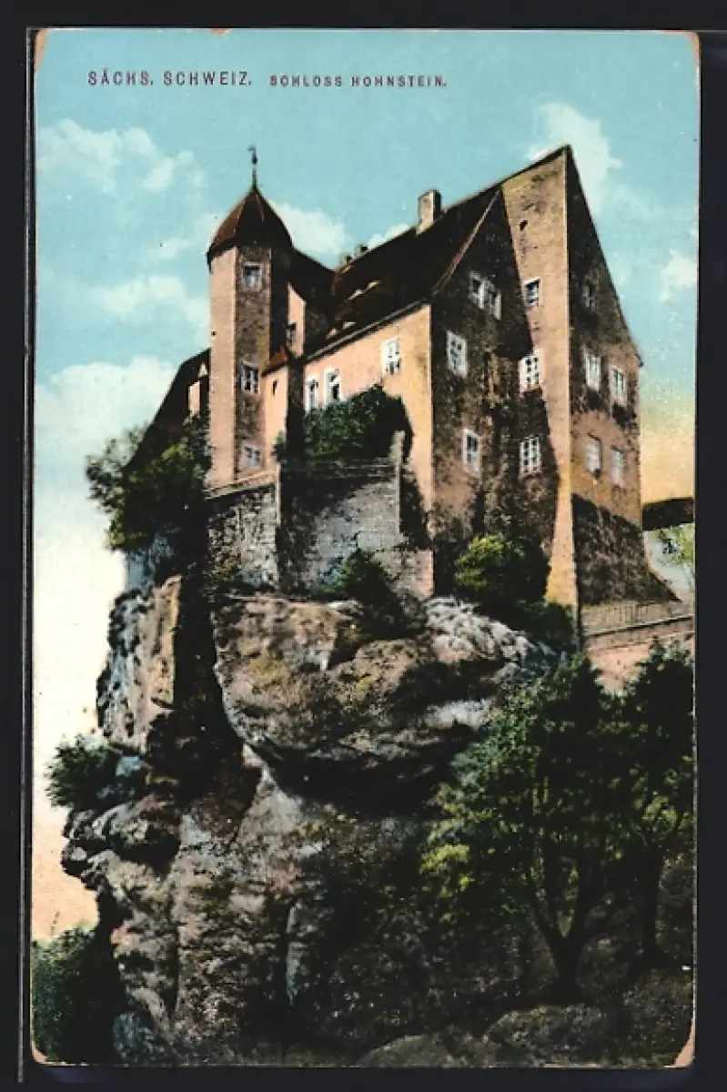 AK Hohnstein, Blick auf Schloss Hohnstein auf der Klippe