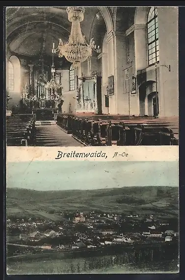 AK Hollabrunn /N.-Oe., Breitenwaida, Inneres der Kirche und Ortsansicht