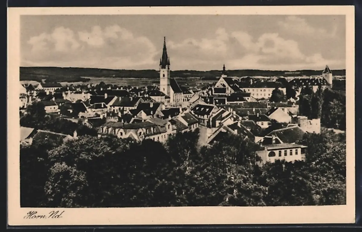 AK Horn, Blick über die Dächer der Ortschaft zum Kirchturm