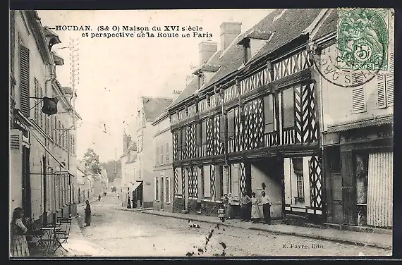 AK Houdan, Maison du XVIe siècle et perspective de la Route de Paris