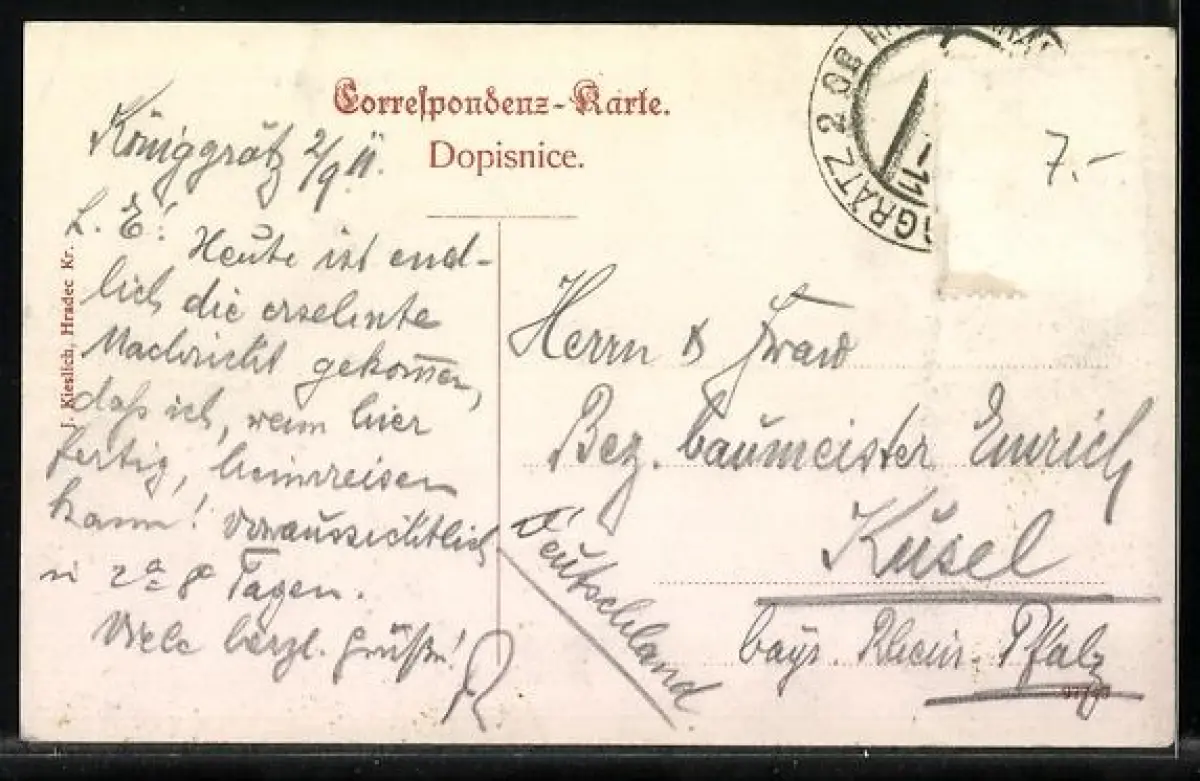 alte Ansichtskarte, gelaufen 1911, Briefmarke entfernt, rückseitig Oberflächenschaden, guter Zustand