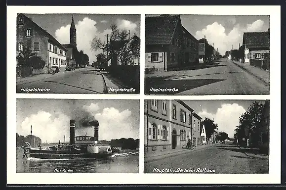 AK Hügelsheim, Hauptstrasse beim Rathaus, Rheinstrasse, Am Rhein