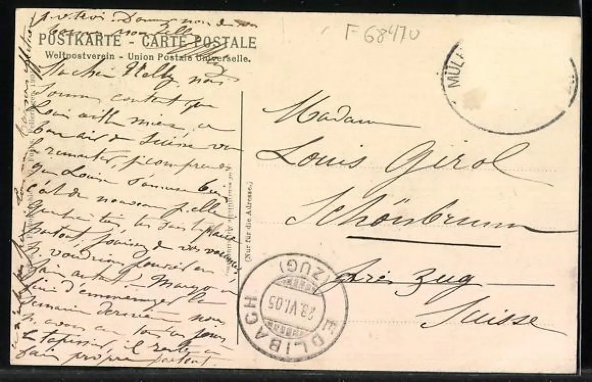 gelaufen 1905, Briefmarke entfernt, rückseitig Oberflächenschaden, guter Zustand