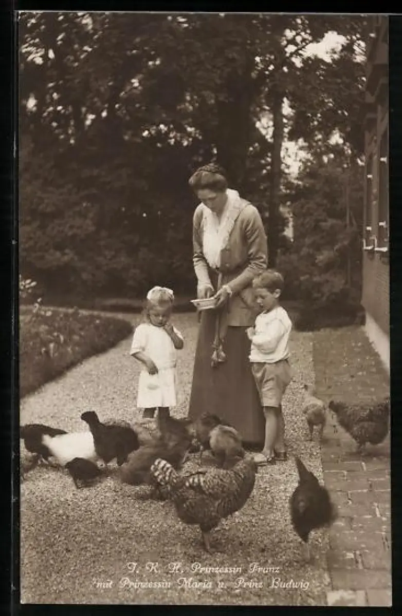 AK I. K. H. Prinzessin Franz von Bayern mit Prinzessin Maria und Prinz Ludwig