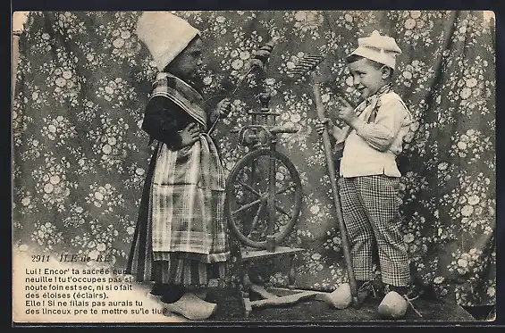 AK Ile-de-Ré, Kleine Spinnerin und kleiner Bäcker in Holzschuhen