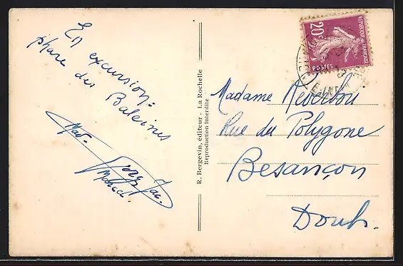 Personenbezogene Daten auf der Rückseite der Karte wurden durch blauen Textmarker unkenntlich gemacht. Die blauen Stellen sind auf die Vorderseite durchgeweicht und wirken sich negativ auf das Postkartenfoto aus