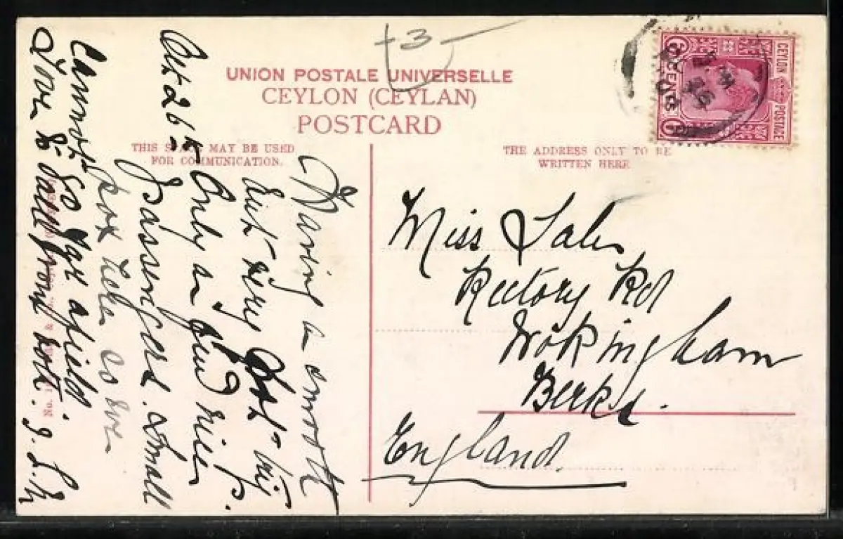 Personenbezogene Daten auf der Rückseite der Karte wurden durch blauen Textmarker unkenntlich gemacht. Die blauen Stellen sind auf die Vorderseite durchgeweicht und wirken sich negativ auf das Postkartenfoto aus
