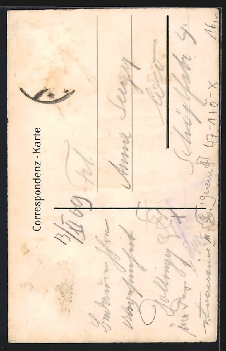 alte Ansichtskarte, gelaufen, Briefmarke entfernt, guter Zustand