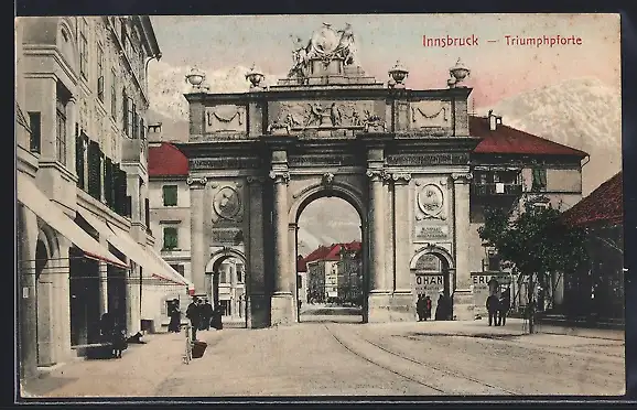 AK Innsbruck, Triumphpforte mit Strassendurchblick