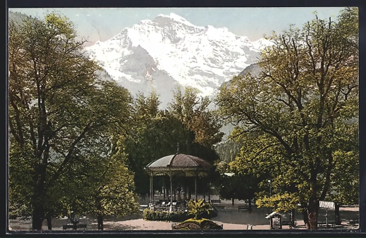 AK Interlaken, Kursaal, Musikpavillon mit Jungfrau