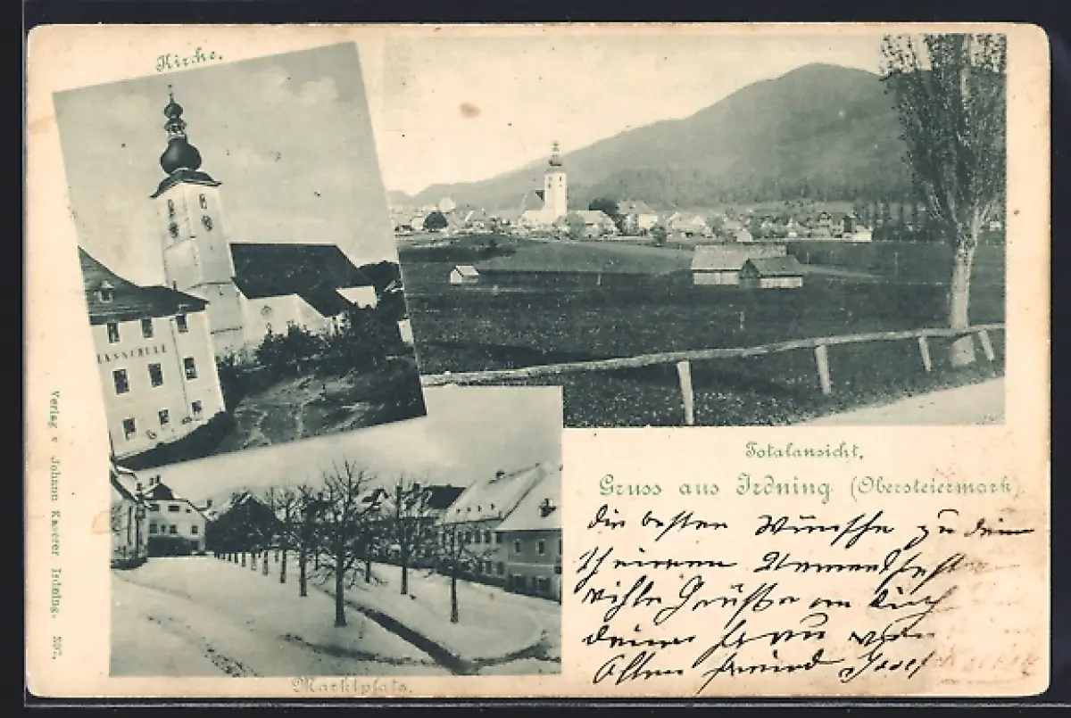 AK Irdning, Marktplatz, Kirche und Totalansicht