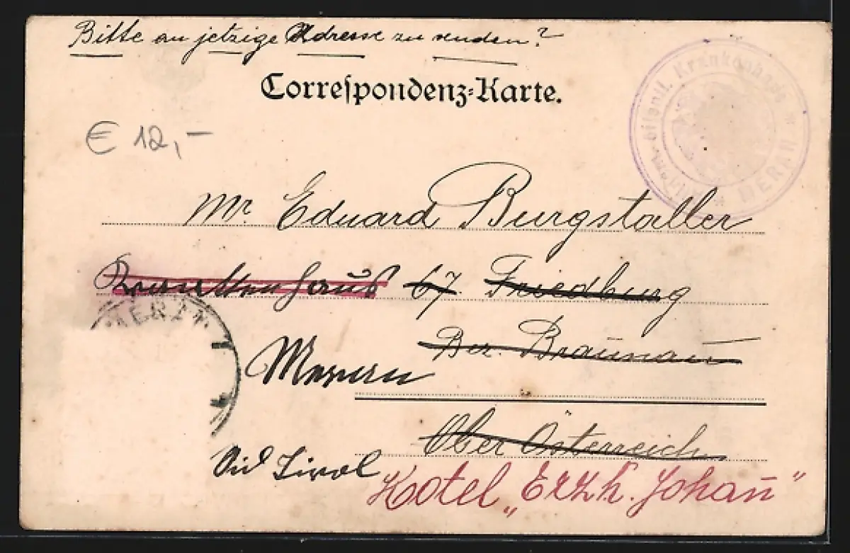 alte Ansichtskarte, gelaufen, Briefmarke entfernt, rückseitig Oberflächenschaden, guter Zustand