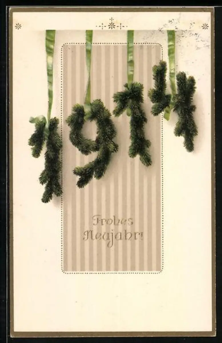 AK Jahreszahl 1914 aus Tannenzweigen, Neujahrsgruss