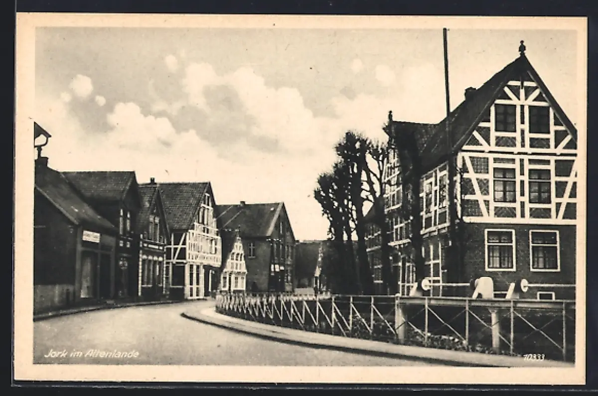 AK Jork im Altenlande, Fachwerkhäuser, Strassenansicht