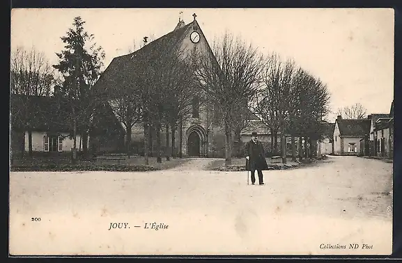 AK Jouy, L`église et la place du village en hiver