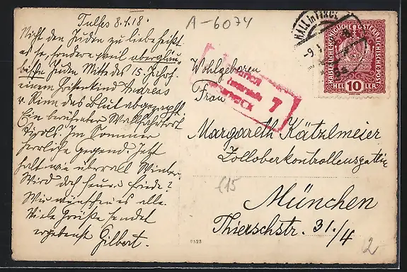 gelaufen 1918, Stempelspur, guter Zustand