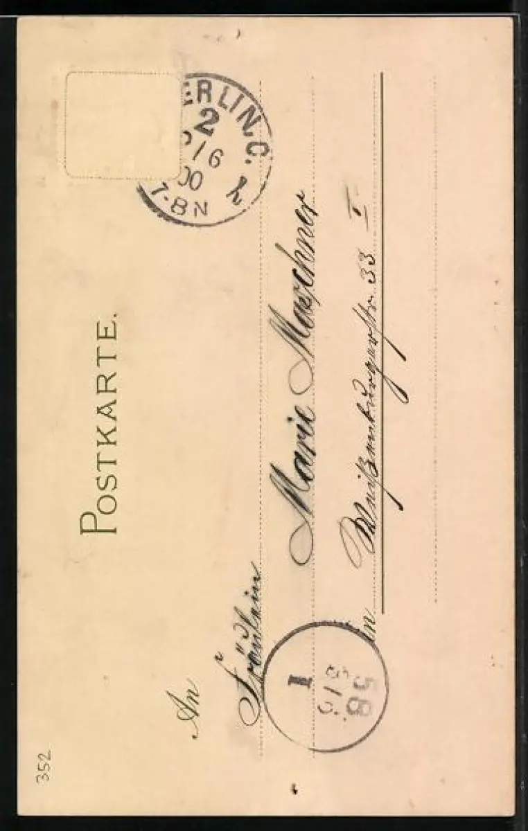 alte Ansichtskarte, gelaufen 1900, Briefmarke entfernt, Stecknadellöcher oben u. unten mittig, guter Zustand