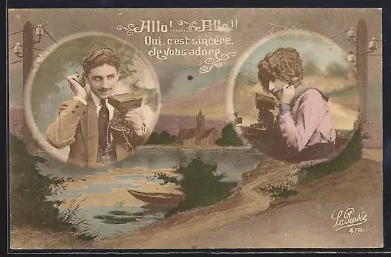 AK Junge Frau telefoniert mit ihrem Liebsten