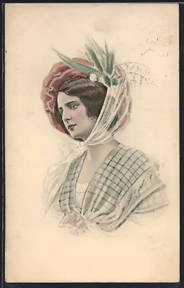 AK Junge hübsche Dame mit Blumenhut