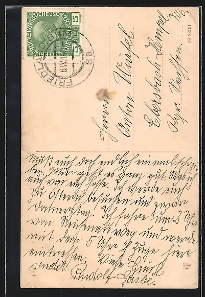 alte Ansichtskarte, gelaufen 1914, rückseitig Klebe- und Papierreste, guter Zustand