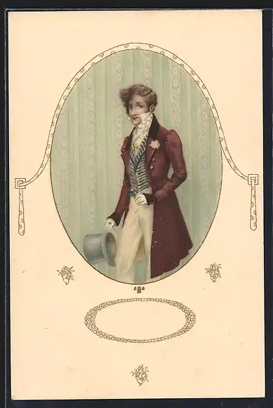 AK Junger Herr im Mantel mit Zylinderhut, Biedermeier
