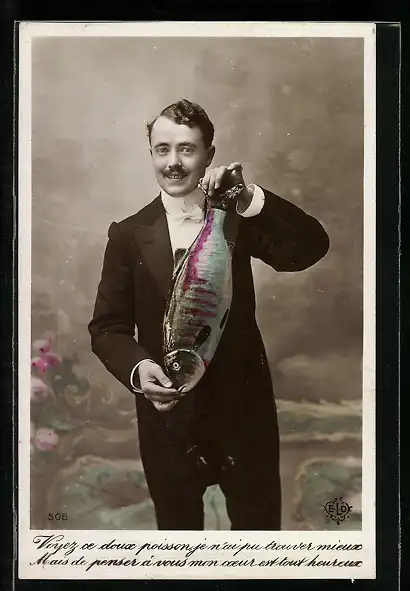 AK Junger Herr präsentiert stolz seinen Fisch am 1. April