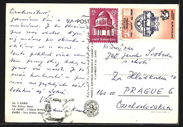 AK Kairo, Hilton Hotel mit Löwenstatue